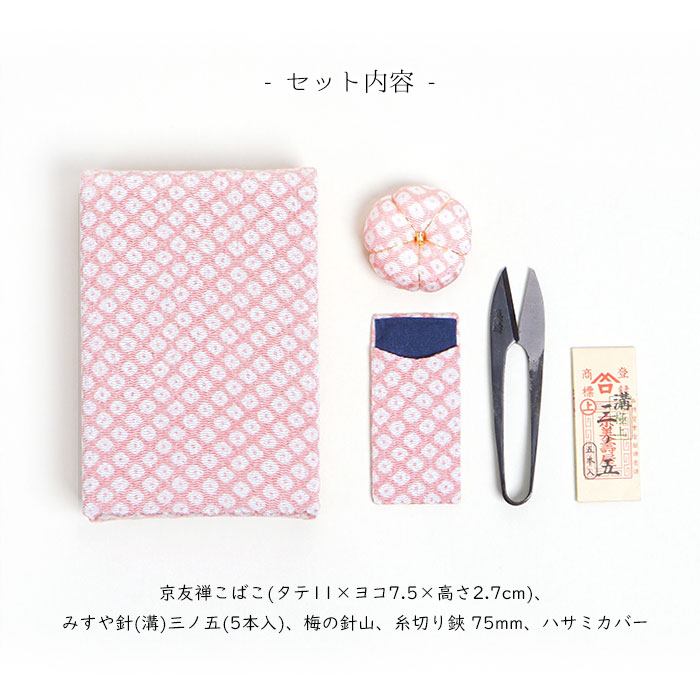 こばこ・梅の針山・ハサミカバーはお揃いの生地で仕上げました。