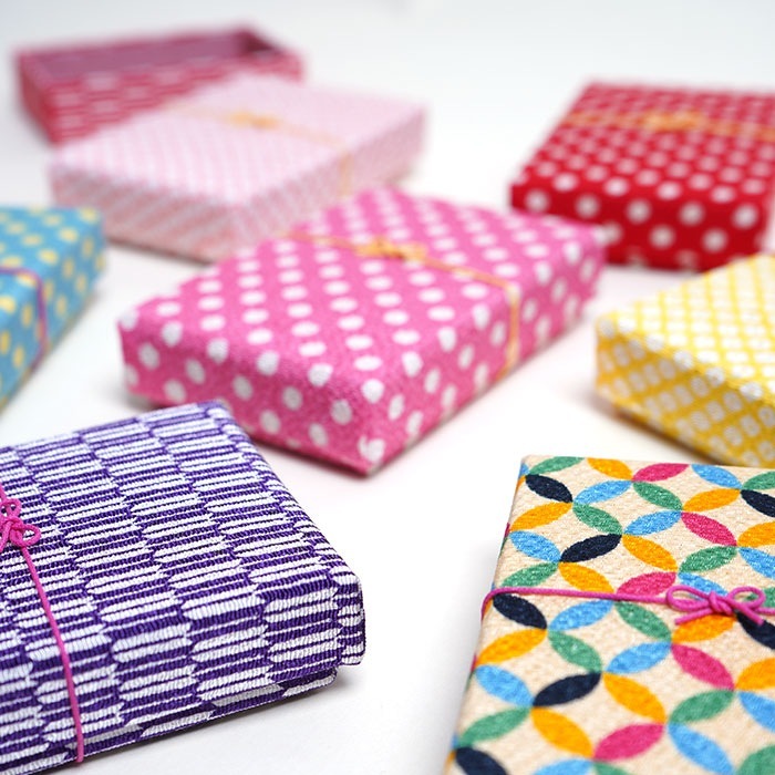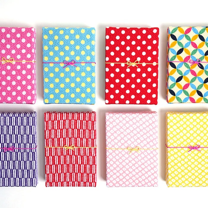 伝統文様をカラフルに表現したちりめんを使用したこばこのセットです。