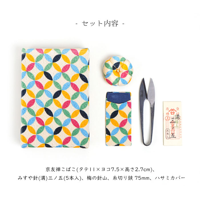 伝統文様をカラフルに表現したちりめんを使用したこばこのセットです。