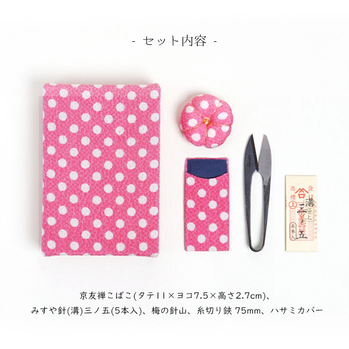こばこ・梅の針山・ハサミカバーはお揃いの生地で仕上げました。