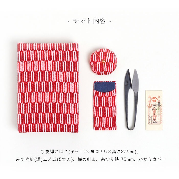 こばこ・梅の針山・ハサミカバーはお揃いの生地で仕上げました。