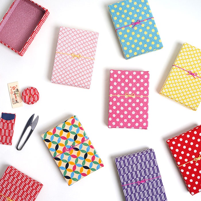 伝統文様をカラフルに表現したちりめんを使用したこばこのセットです。