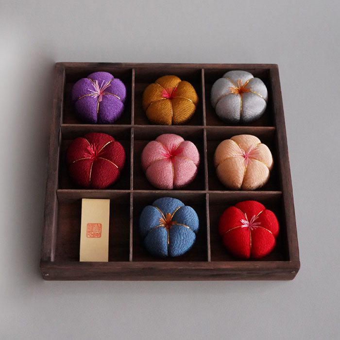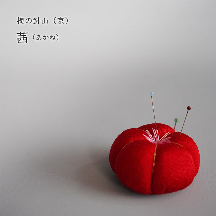 梅のかたちをした針山です。可愛さの中にもどこか落ち着いた雰囲気のある色を揃えました。まるで和菓子のようなコロンとしたかたちはいくつも集めたくなる愛らしさです。■サイズ:直径 6.5×高さ 3(cm)■素材:表地=レーヨン100%、綿=ポリエステル100%※製造国:日本※全て手づくりですので、一点一点サイズや形が異なります。手づくりの風合いをお楽しみください。