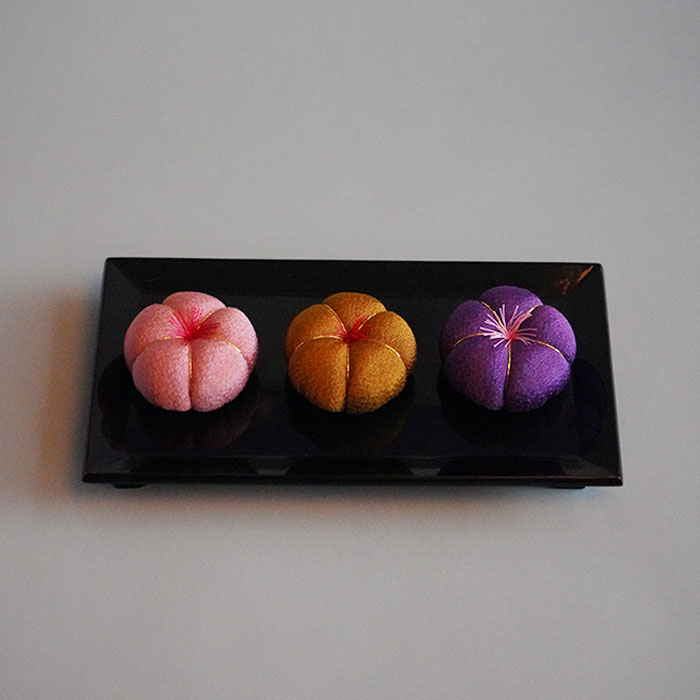 梅のかたちをした針山です。可愛さの中にもどこか落ち着いた雰囲気のある色を揃えました。まるで和菓子のようなコロンとしたかたちはいくつも集めたくなる愛らしさです。■サイズ:直径 6.5×高さ 3(cm)■素材:表地=レーヨン100%、綿=ポリエステル100%※製造国:日本※全て手づくりですので、一点一点サイズや形が異なります。手づくりの風合いをお楽しみください。
