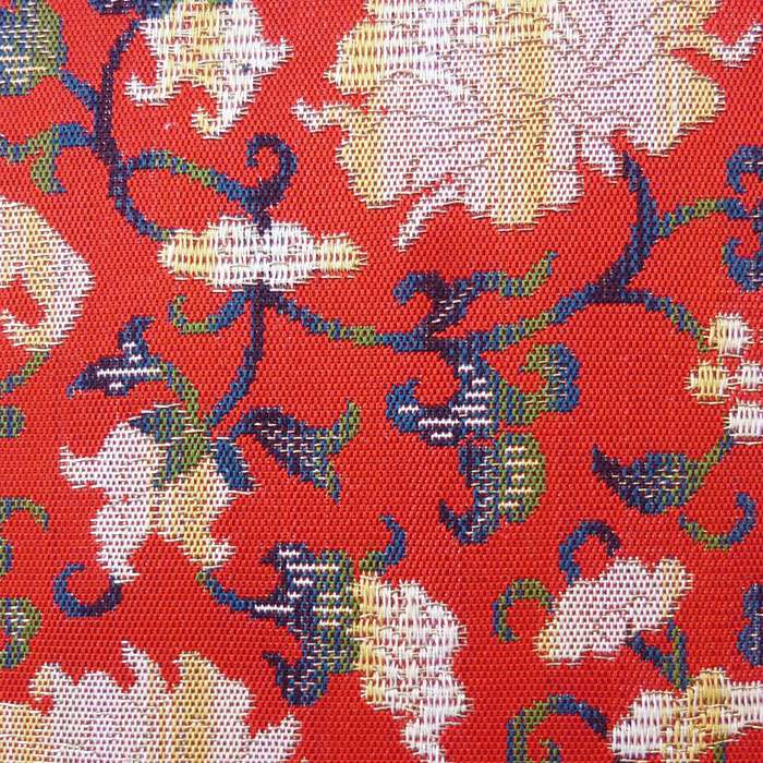 力強さと華やかさのある晴れやかな赤色に、牡丹唐草が映える印象です。