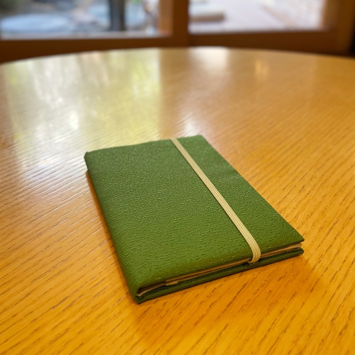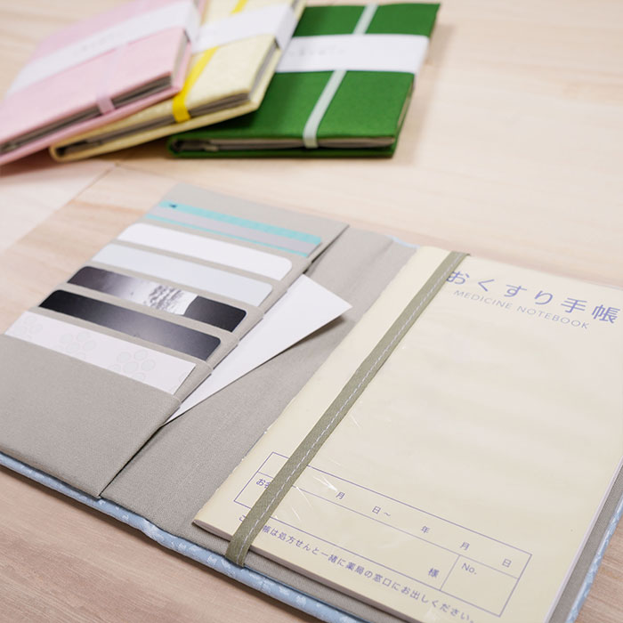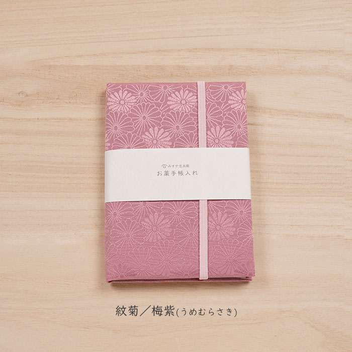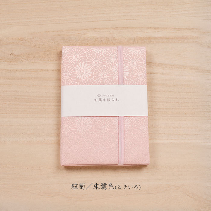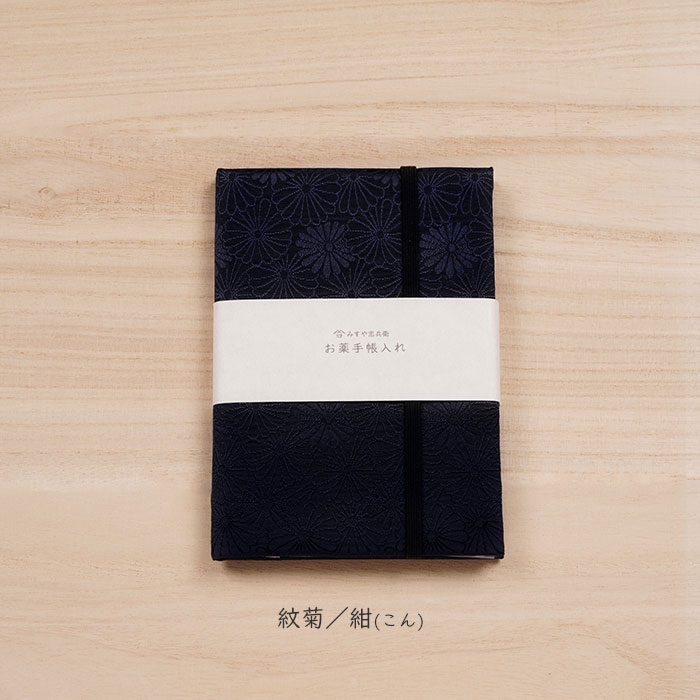 地模様が美しい地紋織の生地のお薬手帳入れです。